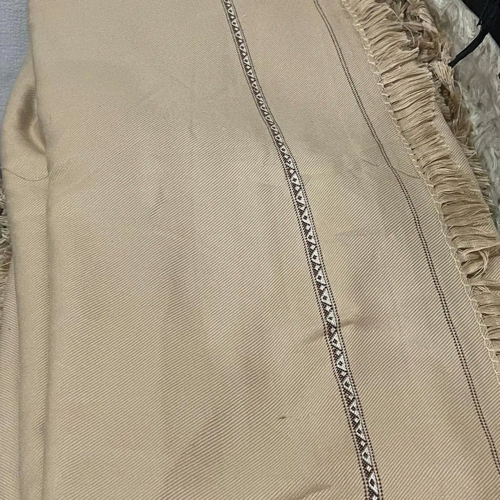 • Fabric: Wool• Pattern: Plain• Number Of Pieces: 1 Pc• Color: Beige• Package Includes: 1 x Shawl• Size Dimensions: 3 Yards• Note: There might be an error of 1-3 cm due to manual measurement, and slight color differences may occur as a result of varying lighting and monitor effects.