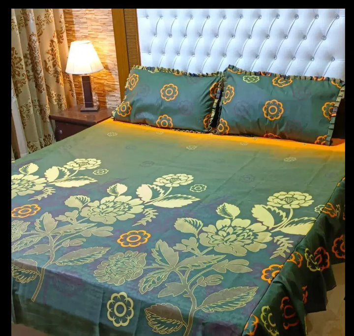 3 Pcs Cotton Salonica Frill Double Bedsheet