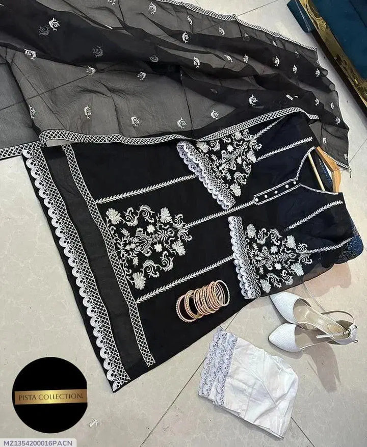 3 Pcs Women's Stitched Organza Embroidered Suit