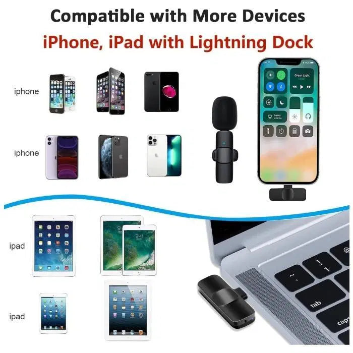 K9 Wireless Lavalier Microphone with Lightning Connector for iPhone iOS | Plug & Play Mic