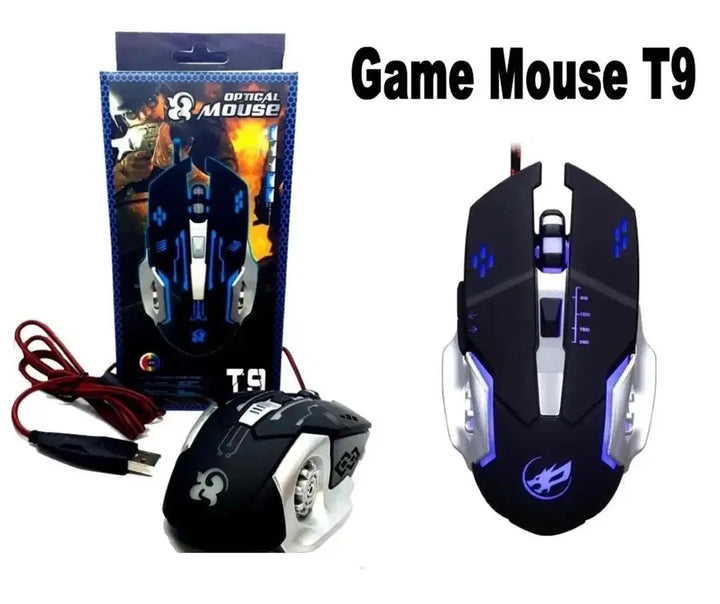 • Material: ABS Plastic• Product Feature: Portable• Color: Multicolor• Package Includes: 1 x RGB Gaming Mouse• T9 Optical Gaming Mouse ke sath apni gaming ko naya andaaz dein! 3200DPI sensor ke sath yeh mouse high precision aur smooth tracking deta hai, jo fast gameplay ke liye perfect hai. RGB LED lights vibrant aur customizable effects ke sath gaming ka maza barhate hain. USB wired connection stable performance deta hai. Ergonomic design lambi gaming sessions ke liye comfortable hai. Plug-and-play setup ke sath abhi gaming ka maza khtm kren!• Highlights / Key Features:• ? 3200DPI Sensor: Adjustable precision for gaming and tasks.• ? RGB LED Lights: Customizable vibrant lighting effects.• ? USB Wired: Stable, plug-and-play connection.• ? Ergonomic Design: Comfortable grip for long sessions.• ?? Durable Build: Sturdy materials for extended use.• What’s in the Box:• 1 x T9 Optical Gaming Mouse• Note: Please ensure to follow the instructions provided in the user manual for proper usage and safety precautions.• Product Code: SS1685200163SCMT